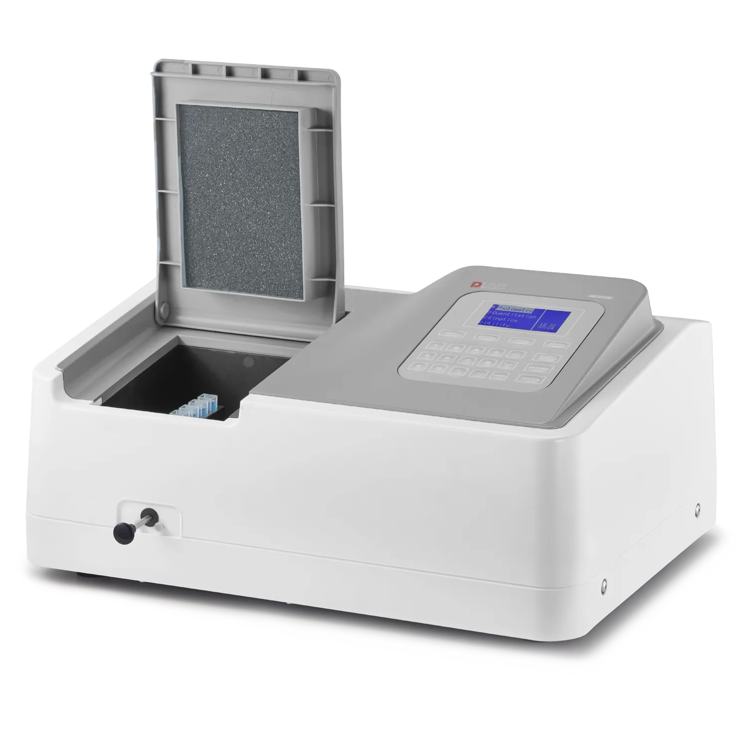 The SP-UV1100 Spectrophotometer is a single beam UV-Visible spectrophotometer designed for accurate and routine laboratory analysis. It supports quantitative, photometric, wavelength scanning, and kinetic measurements across the 190–1100 nm range, making it ideal for DNA, RNA, protein quantification, and absorbance studies. With a compact structure, easy-to-read backlit LCD, and built-in data storage, it suits clinical, educational, and research environments. Its USB connectivity enables seamless data transfer to a PC, while the 4-position cuvette holder enhances throughput for routine tasks.
